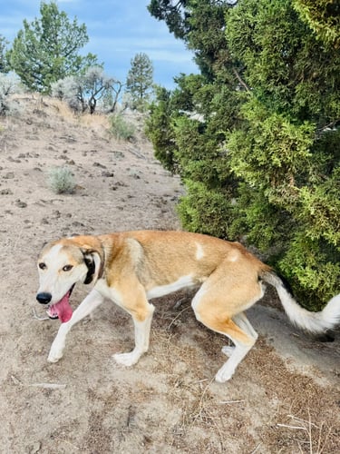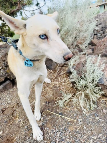 Ziggy is an 8 year old beauty who has been a solid lead dog and an amazing mama to the next generation of sled dogs at Oregon Trail of Dreams. Ziggy is mellow and sweet, but will pop right up if you mention a walk! She is ready for a person or family to enjoy her golden years with. She would like to request a plushy couch and lots of outdoor adventures!
