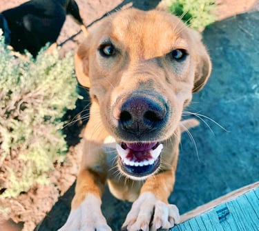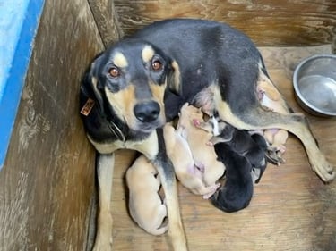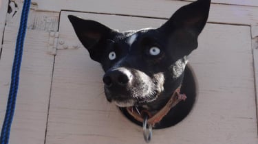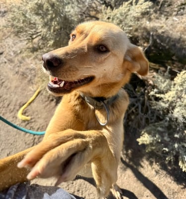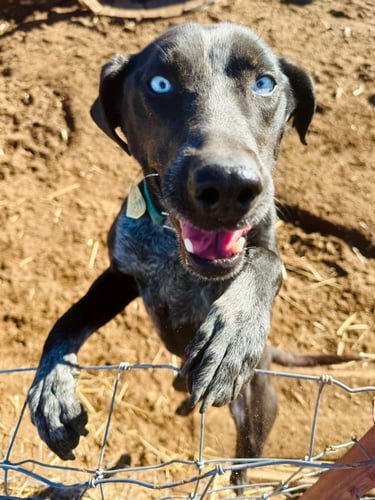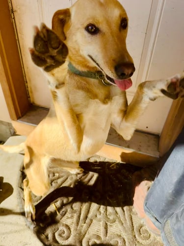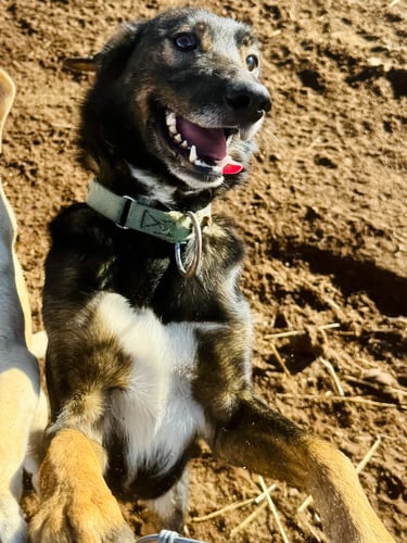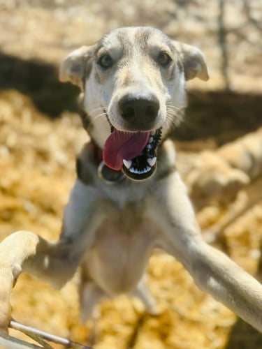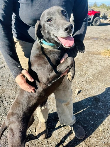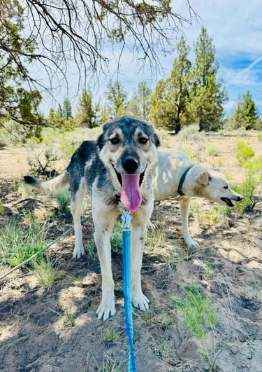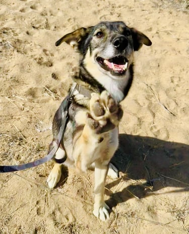 DaVinci is a 10 year old queen who is ready for her throne. Still full of sass and spunk, she'll want a moderately active retirement home. She was primarily a wheel dog for most of her career, and she knows she's got power! DaVinci loves to rest her chin on your leg and look longingly into your soul. She's a very charming lady and will win you over quickly with her big personality.
